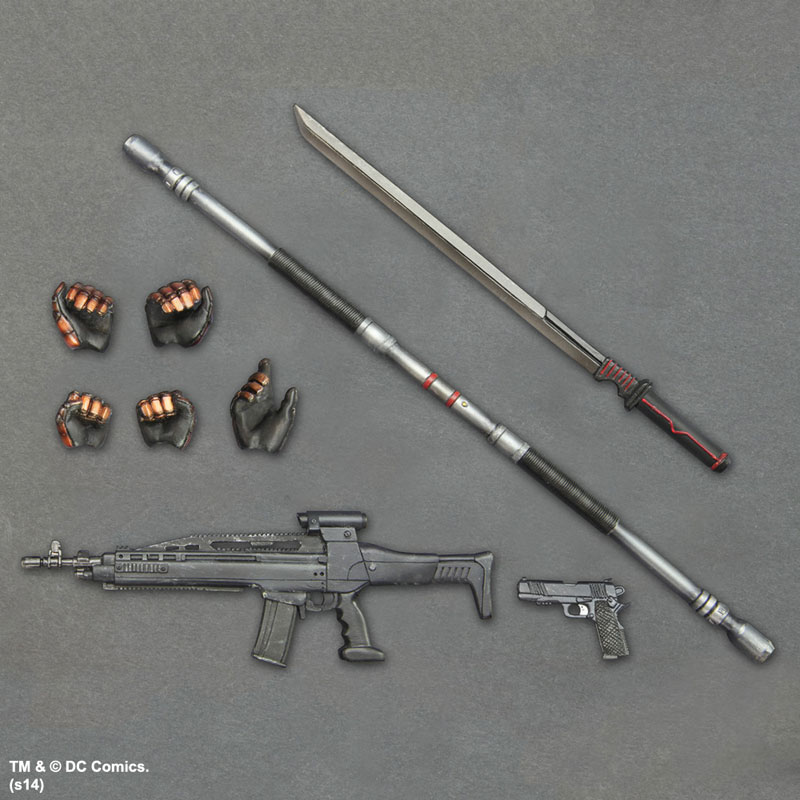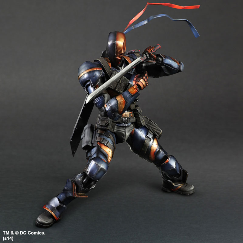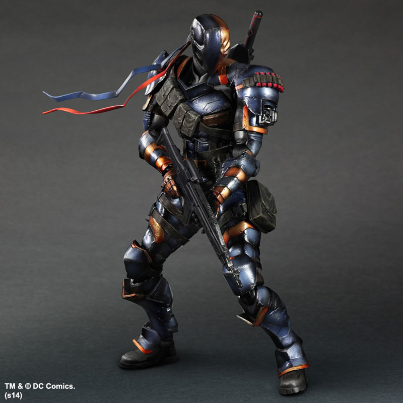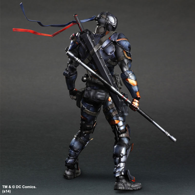 As seen at Toy Fair (HERE), Square Enix's next series of Batman Play Arts Kai action figures will be based on characters from last year's video game entry, Batman: Arkham Origins. Slated for release this July, these figures include Batman (but of course!) and his extremely challenging nemesis, Deathstroke. Batman will pack a Batarang, Grapple gun and three optional hand parts, while Deathstroke will include his Sword, Konbou (stick), two guns and five optional hand parts. Both figures will include Square Enix's now standard display base. Like all new Play Arts Kai, these figures will measure approximately 9 inches tall and will feature loads of articulation.