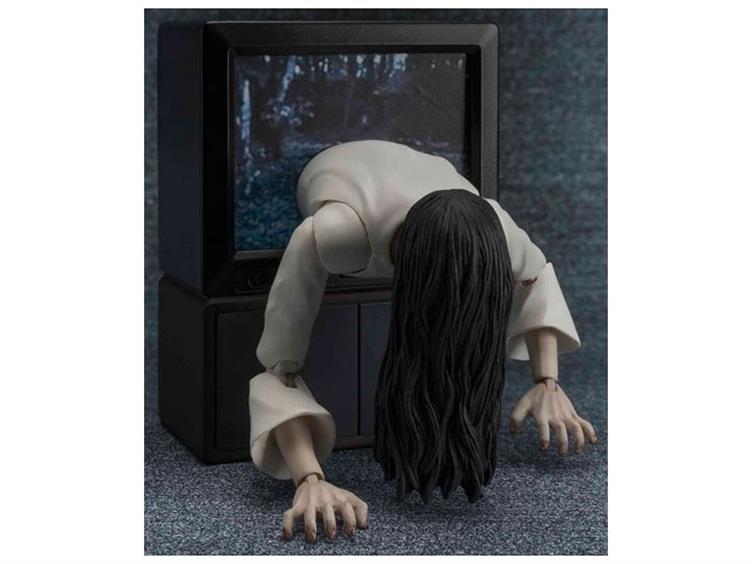 A new BigBadToyStore.com pre-order listing holds quite a surprise for horror fans: a S.H. Figuarts Sadako Yamamura, the creepy-crawly spook from the 1998 Japanese horror film, Ringu. Scheduled to arrive this July priced at $49.99, the S.H. Figuarts Sadako Yamamura stands slightly over 6 inches tall when posed upright and comes fully articulated for tons of creepy-tastic poses. The figure also includes extra hands and lower body parts. Perhaps best of all, she comes with a TV set to emerge from! Her legendary videotape is also included (in scale to the figure).