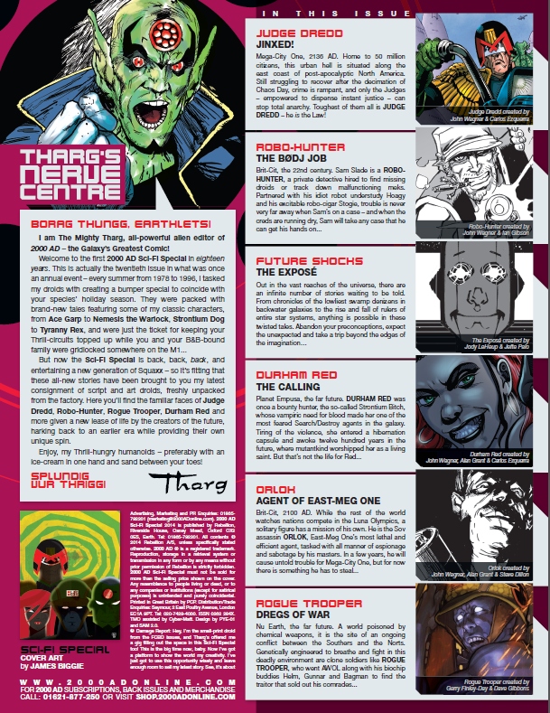 The 2000 AD Sci-Fi Special will be available from all good newsagents and comic book stores on May 28th, as well as worldwide DRM-free digital through the 2000 AD webshop, and for iPad and iPhone through the 2000 AD app.