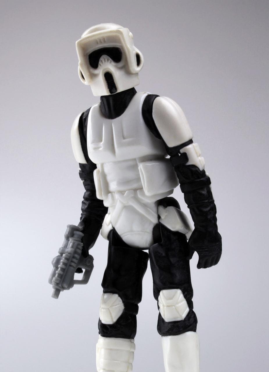 Digitally scanned from mint 3 ¾” Kenner originals and reproduced at a Jumbo size, no detail has been overlooked. Roto cast and made of durable plastics, this jumbo figure includes a faithfully reproduced Scout Blaster accessory! It even comes fully articulated!
