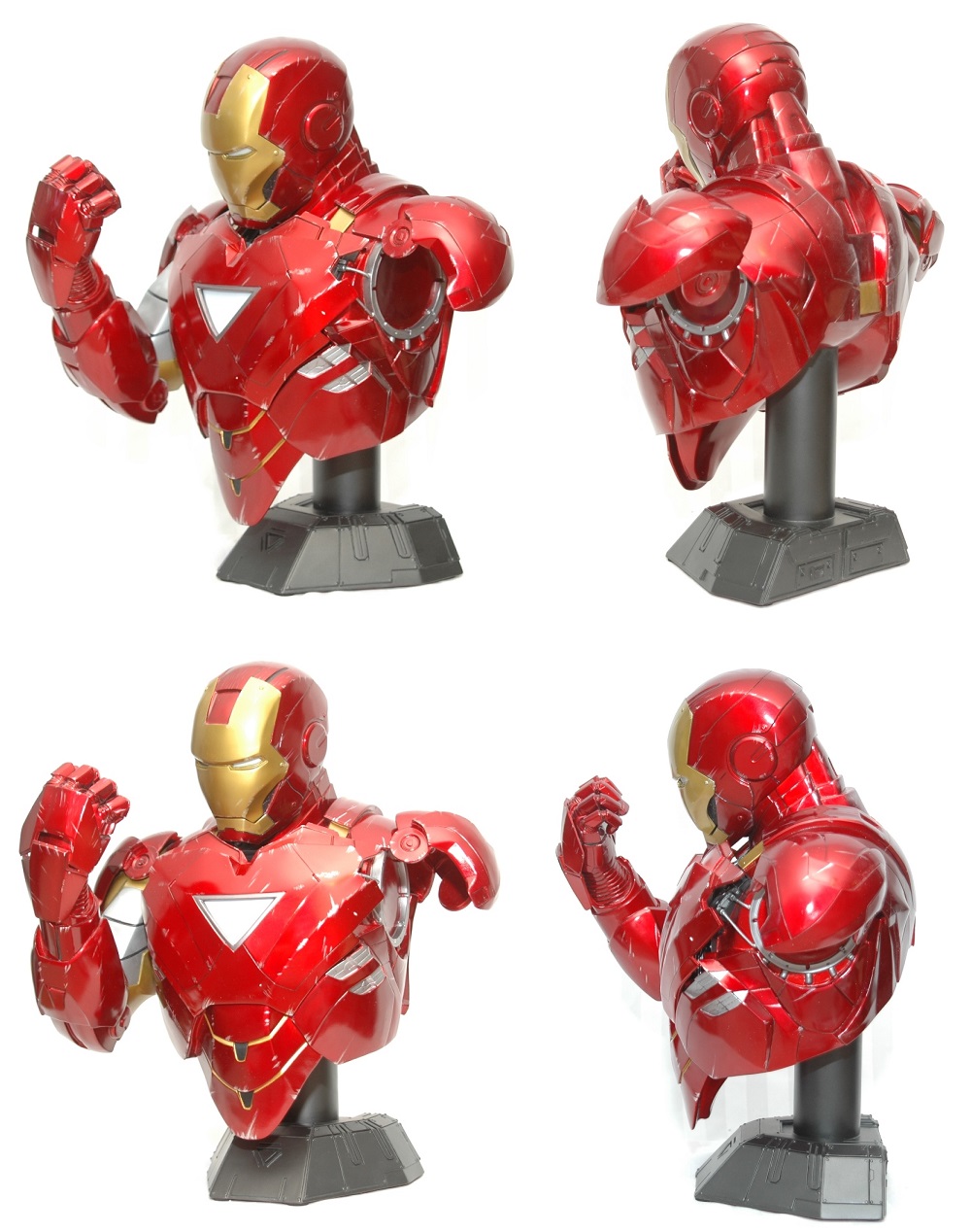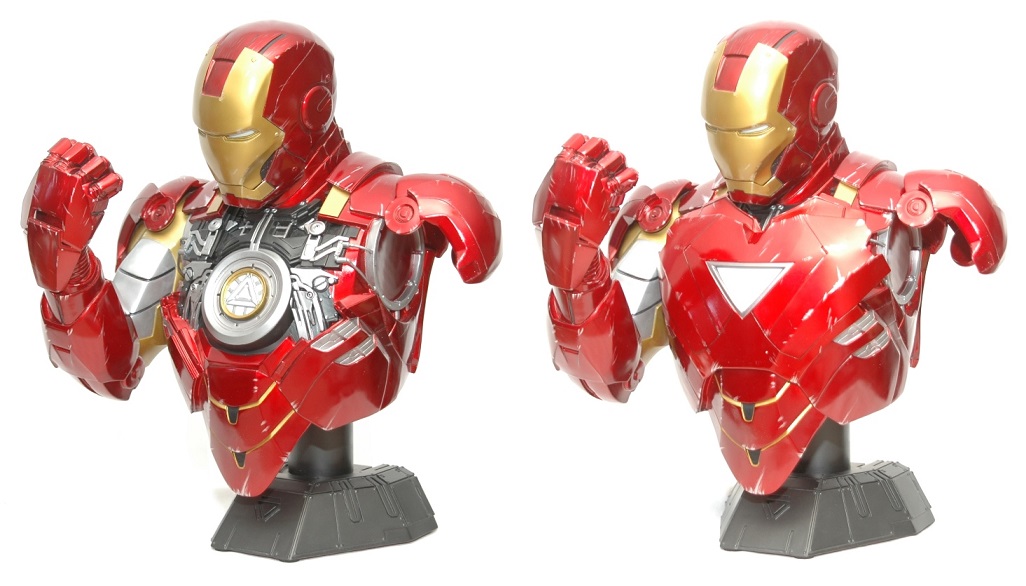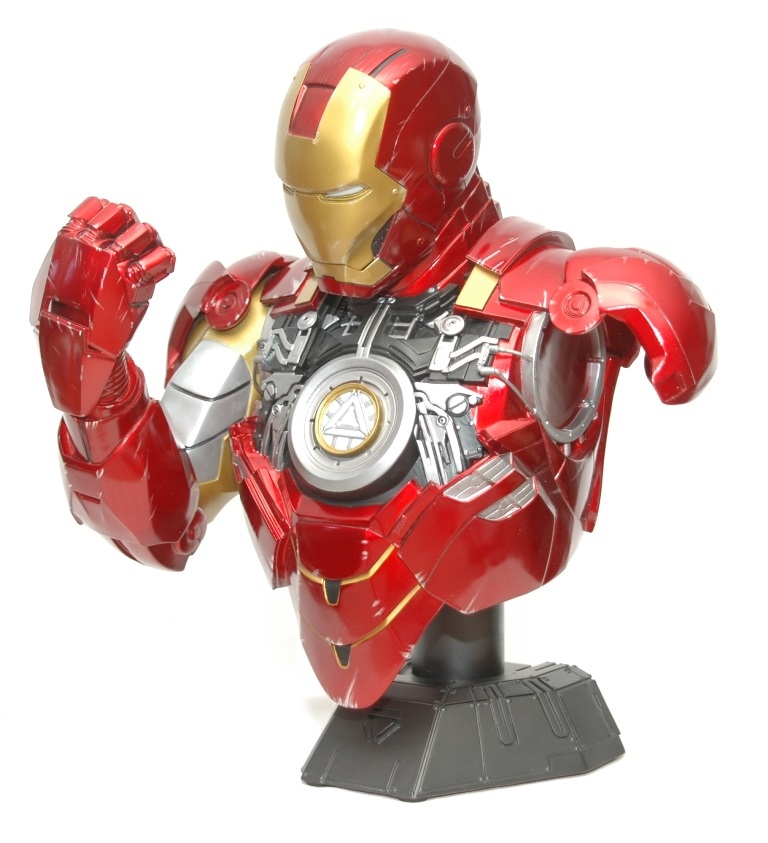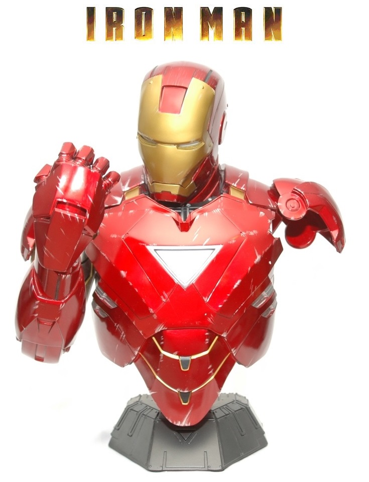 Straying from the traditional bust design which typically include only the head, neck and chest of a character, the Iron Man - Mark VI Legendary Bust includes the right arm of Iron Man, clenched in a fist, as well. The addition of the right arm not only adds physical size to the bust, but contributes attitude as well, providing fans with the feeling Iron Man is ready to strike.