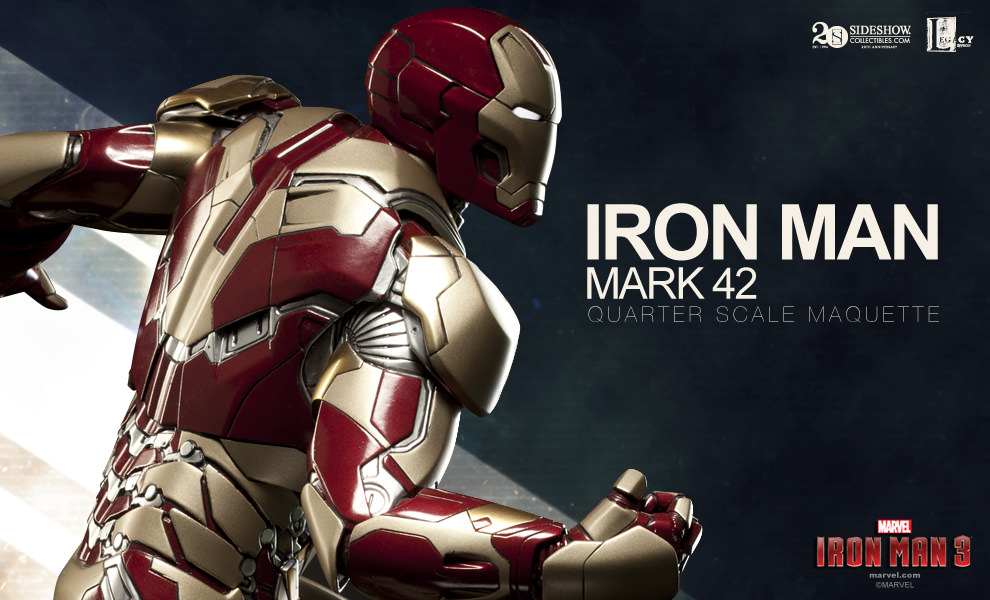 Iron Man Mark 42 Maquette (pictured below) - From Iron Man 3, Sideshow Collectibles’ Iron Man Mark 42 Quarter Scale Maquette is coming soon (pre-order TBA).