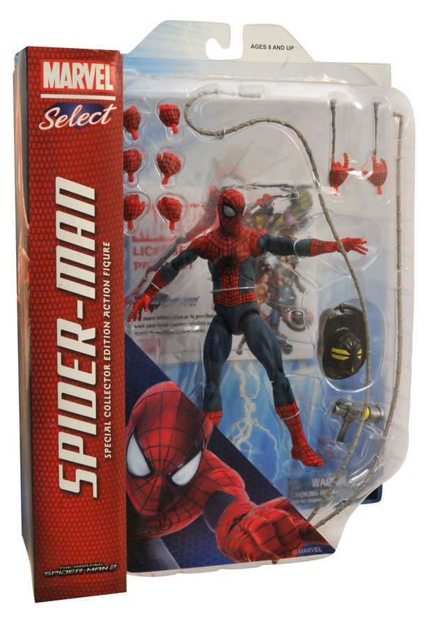 Diamond Select Toys announces that their Marvel Select Amazing Spider-Man 2 action figure is finally creeping its way into your local comic shop. Standing 7 inches tall with 16 points of articulation, Spidey comes with an array of accessories, including interchangeable hands, weblines, web sprays and an exclusive fireman's helmet and hose nozzle! Check out the gallery of images above/below, and stop by your local comic shop (or visit your favorite online retailer) to pick up your own.
