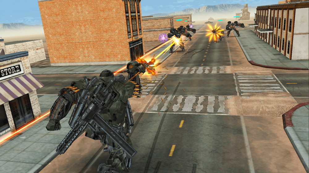 Whether charging down the street in robot mode or driving at high speed in vehicle mode, the player is always in the middle of the action as they change forms during frantic missions. By customizing his or her TRANSFORMERS team with weapon and tech upgrades, the player is prepared to take on wave after wave of DECEPTICONS.