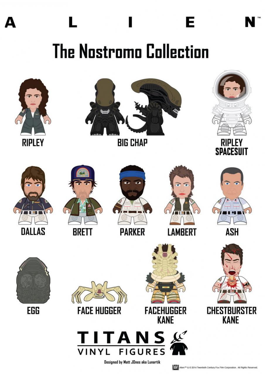 From 20th Century Fox and Titan Merchandise comes Alien TITANS: The Nostromo Collection. The entire crew of the USCSS Nostromo are featured in this 12 piece set – including their stowaway, the infamous Xenomorph (nicknamed "Big Chap").