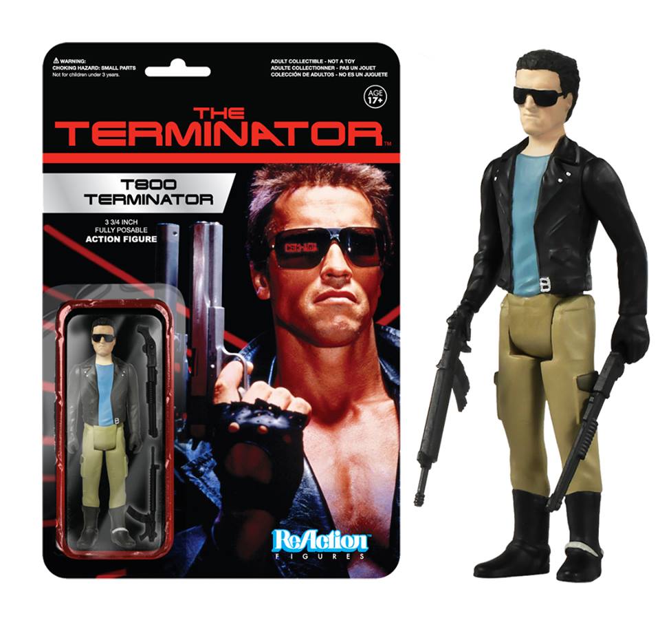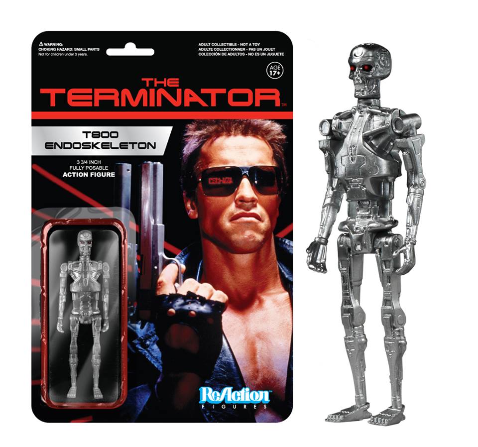 Funko provides a better look at their upcoming ReAction figure assortment based on characters from 1984's sci-fi classic, The Terminator. Scheduled for release this August, The Terminator ReAction series stars Arnold Schwarzenegger in his many incarnations as the unstoppable T-800 killing machine: Tech Noir, Police Station Assault and Endoskeleton (including a chromed out version!), as well as the film's protagonists Sarah Connor and Kyle Reese.