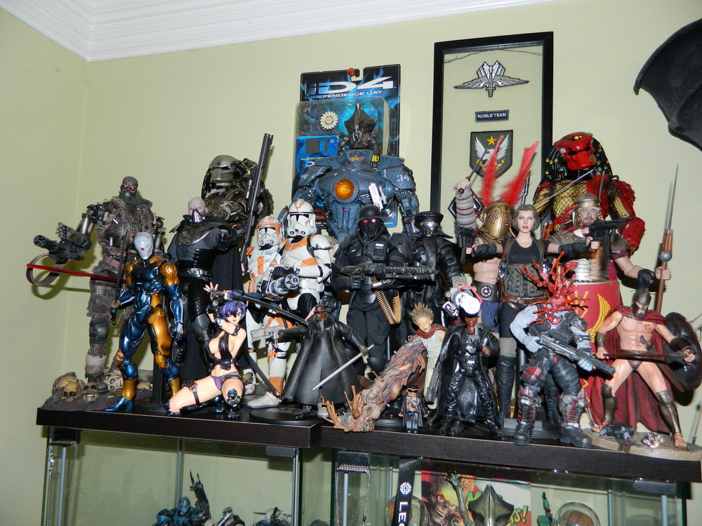 I know a fair number of collectors, and I have not seen this choice in person, outside of comic stores, though I’m certain it happens (especially with Hot Toys Collectors). The Museum Exhibit is just that: it treats the collectibles as pieces of art, usually encasing them in glass with overheads casting a beam of light onto the prized items, which are usually in a relatively static yet possibly iconic pose. This is certainly the most “hands-off” form of displaying, but the attention shown to the collectible commands a moment’s pause. The visitor/viewer is forced to think, “Given that display area, surely the collectible warrants a second glance.” (a glance which usually turns into a conversation).