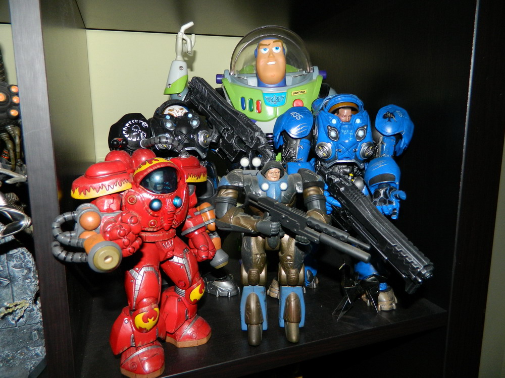 This method tends to be the most common method for those who simply have far too much to organize, categorize, or segregate. The anything goes display will showcase whatever is available, usually in an order of height to maximize the visibility; but to the untrained eye, it’s essentially an undisciplined cluster without theme other than “toys!” I find it difficult to pinpoint features of this method—as they really could be anything—but I’ll just say that it makes one’s display area look like rented space in a consignment shop. I love the Anthying goes display because it allows for exploration. Fellow fans can look at the seeming mountain of incoherent plastic and find your Rufio figure or that Micro Machine Tantive IV hidden in the corner. Half the fun of this display is discovery, and who doesn’t enjoy that?