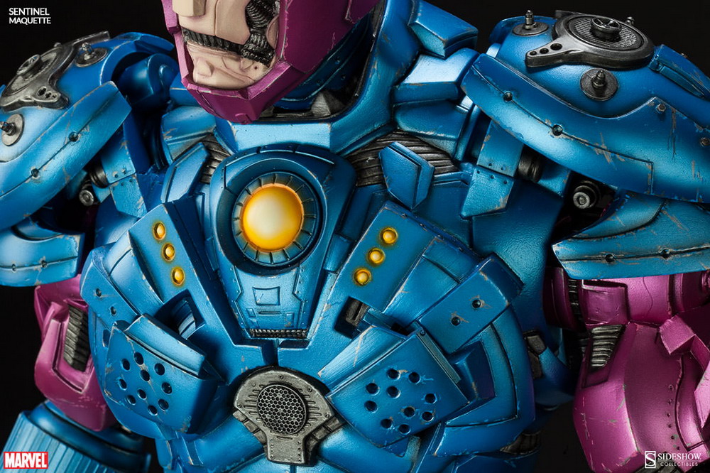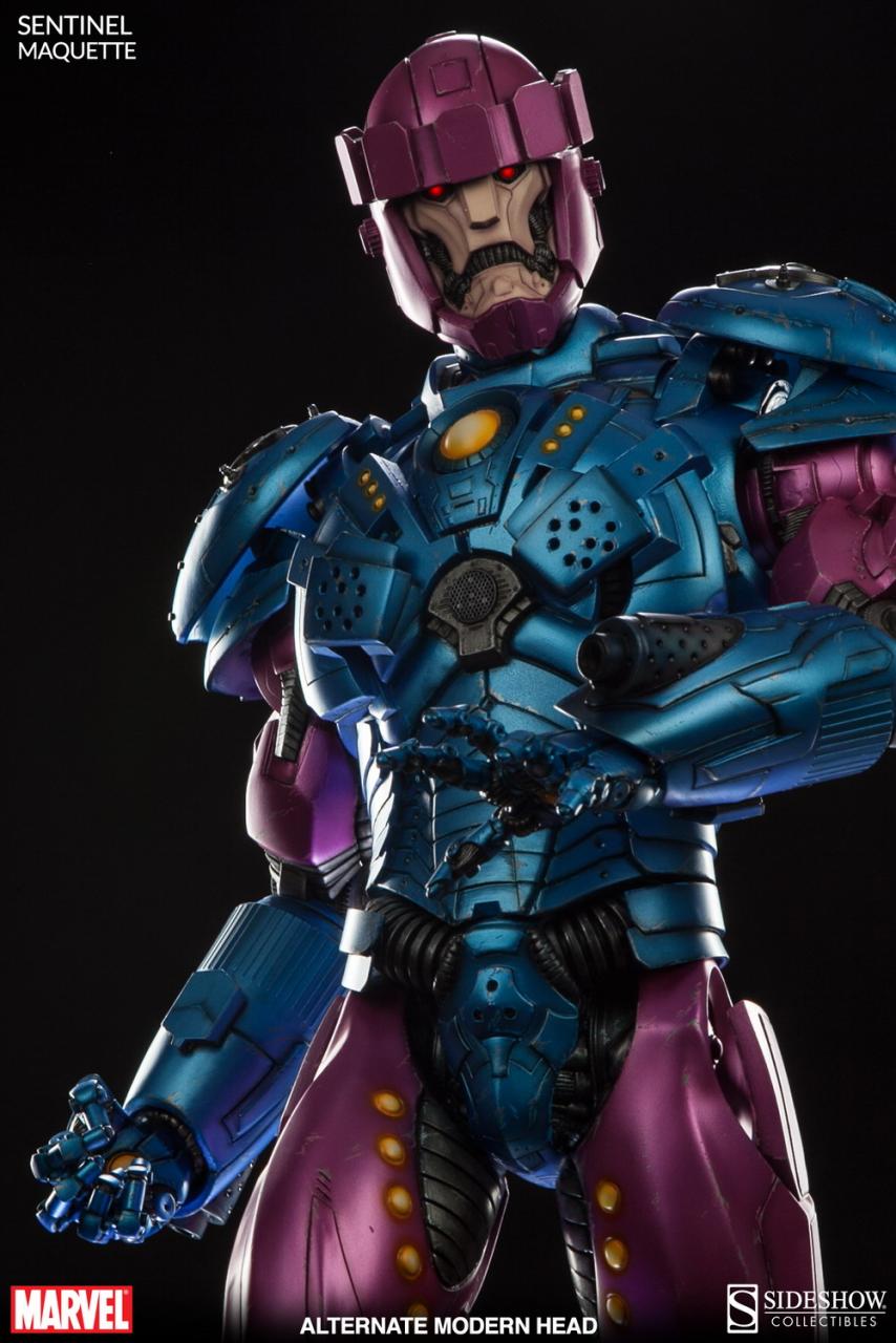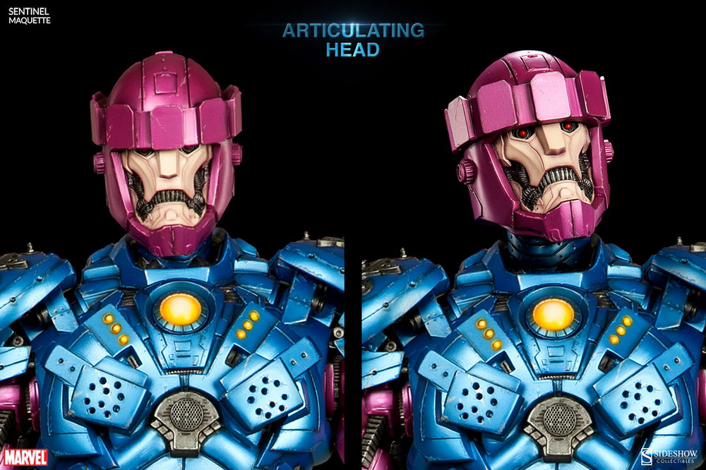 Sideshow presents one of Marvel's towering mutant-erradicating robots, the Sentinel Maquette. Standing an impresive 32 inches tall, this statue comes powered up with light-up features. Swap-out heal sculptsrepresent classic and modern comic book appearances. Better yet, each head can be repositioned, allowing collectors to create the optimal mutant hunting display.