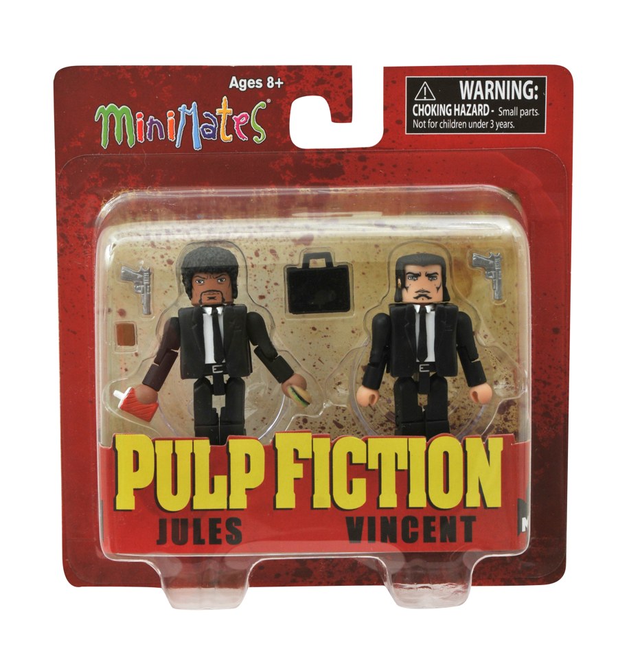 The first Minimates based on Pulp Fiction, the star-studded movie that made Quentin Tarantino a household name, are here, and the first two-pack features hitmen Vincent Vega and Jules Winnfield in their iconic black suits! Each two-inch mini-figure has 14 points of articulation and features a variety of interchangeable parts and accessories, including pistols, hamburger, shake and the mysterious briefcase! Designed by Art Asylum! (Item #MAR141945, SRP: $9.99)