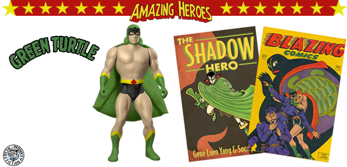 Fresh Monkey Fiction has also announced that a limited amount of The Green Turtle action figures are now available for $25.00 through the Kickstarter campaign. The Green Turtle is featured in the acclaimed graphic novel The Shadow Hero by Gene Luen Yang (American Born Chinese) and Sonny Liew (My Faith in Frankie). Originally offered exclusively as part of a 6 figure set, Fresh Monkey Fiction has set aside 100 units of this limited edition figure so you can now order him individually.