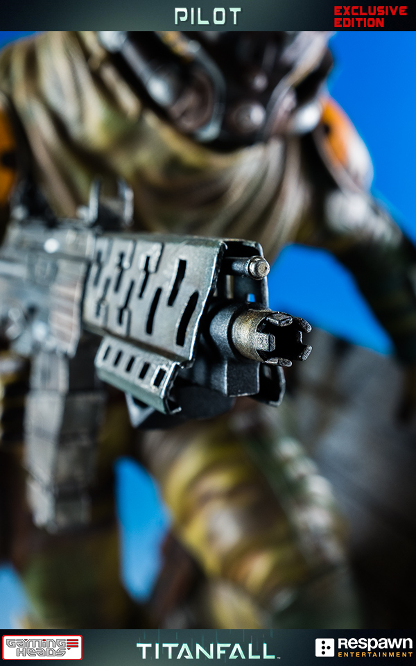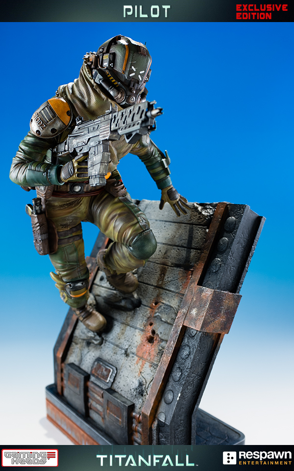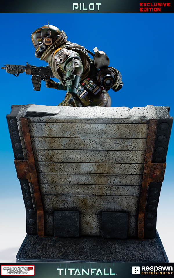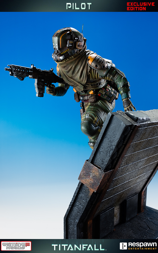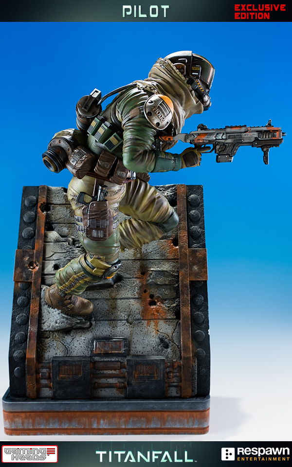 Gaming Heads continues to deliver high-end video game statues with their latest license, Titanfall. The first release from the hit shooter will be the Militia Assault Pilot collectible statue. The statue depicts an agile pilot wall running, wielding a Hemlok Burst-Fire Rifle. Base and figure combined, the Pilot statue measures 23 inches tall.