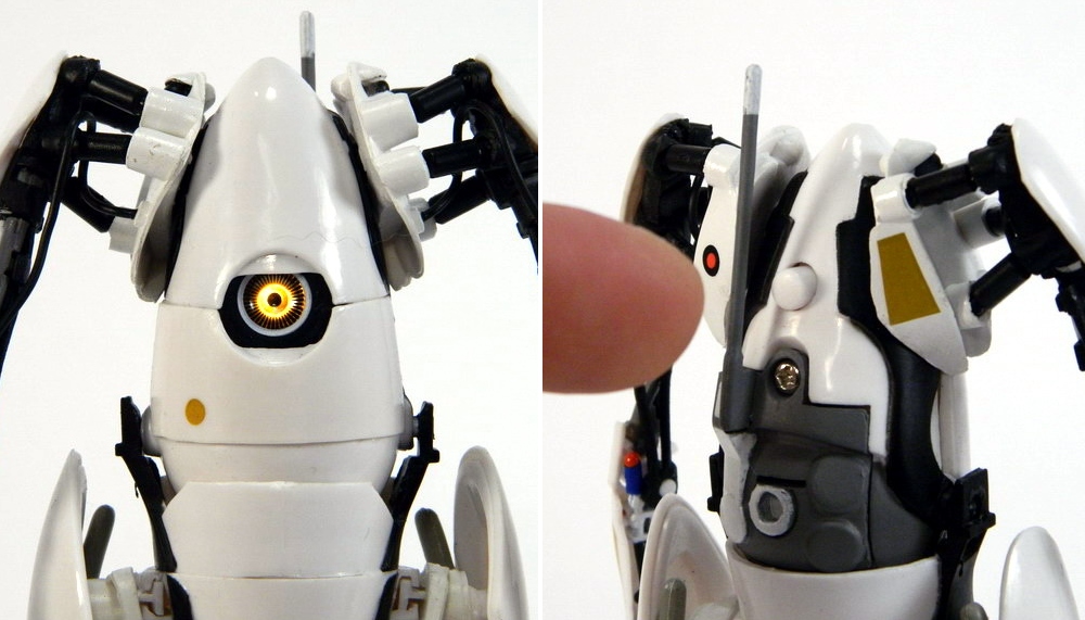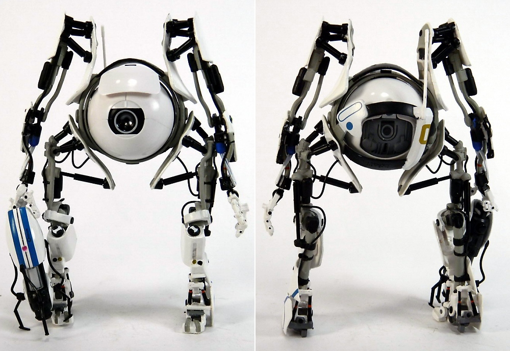 In stores now, the bumbling co-player 'bots of Portal 2 - Atlas and P-body - have finally arrived. Priced at a SRP of around $25 each, this portal-zappin' team have been worth the wait. The amount of engineering that went into these figures is pretty amazing, each 'bot starring an array of working parts and packing a cool light-up feature in their eyes and guns.