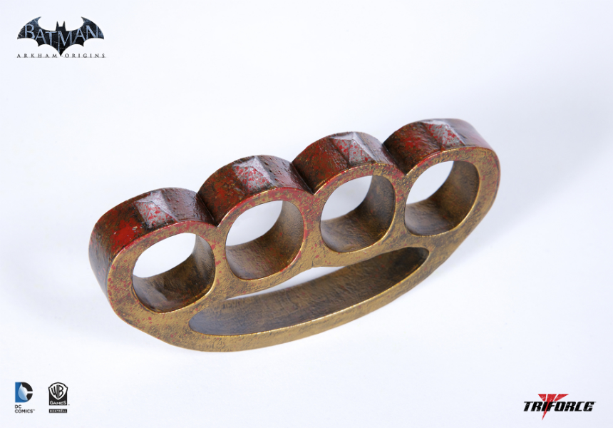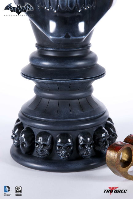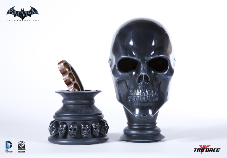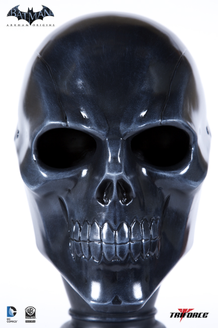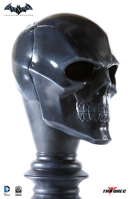 TriForce has opened pre-orders on their Batman: Arkham Origins - Black Mask Arsenal Full Scale Replica. Unveiled at San Diego Comic-Con (HERE), Roman Sionis' mask is crafted and cast in polystone and includes his signature knuckle dusters. Limited Edition of 500 pieces worldwide, the Black Mask Arsenal Full Scale Replica is priced at $400 with a payment plan available. It is available through projecttriforce.com with an estimated ship date in the 4th Quarter of 2014.