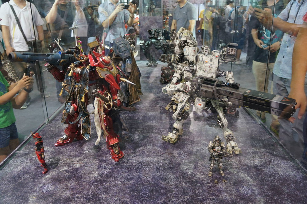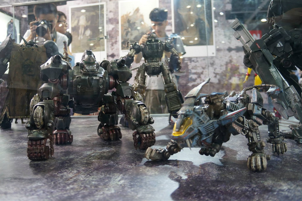 ThreeZero shares with fans photos of their booth at the China International Comics Festival (October 1-5 at Guangzhou Poly World Trade Expo Center). The new photos show off tons of current ThreeZero projects, including Mazinger Z and Aphrodite A, B/3 FullMetal Ghost and FullMetal Ghost Captain Form, HBO Game of Thrones Tyrion Lannister, and Zoids, as well as prototype samples (not finished product) from their Titanfall (new Stryder Titan pictured above) and RoboCop licenses.