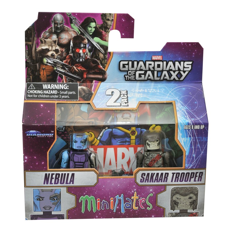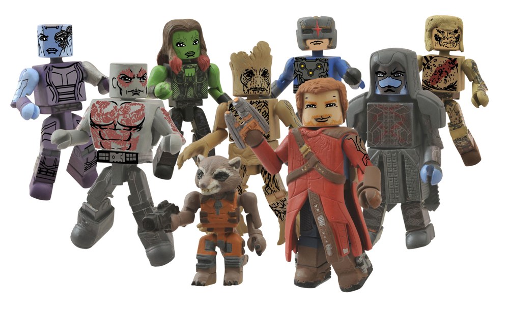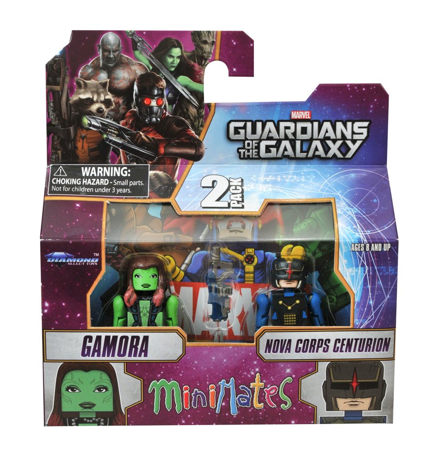 One of the most eagerly anticipated Marvel movies of all time is nearly upon is, and DST is capturing the characters of the film as 2-inch Minimates mini-figures! Featuring nine different characters from Guardians of the Galaxy, this assortment includes four different two-packs: Star-Lord with Ronan, Drax with Groot (and a Rocket Raccoon micro-figure), Gamora with Nova Corps Centurion, and Nebula with Sakaar Soldier. The Gamora and Nebula sets will only be available in comic shops and specialty stores, so don't miss out. (Item #APR141985, SRP: $9.99/2-pack)