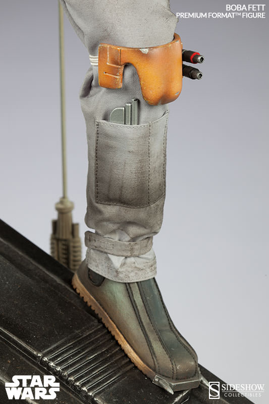 Arm Boba Fett with his BlasTech Industries EE-3 Blaster Rifle Mark II swap-out accessory, available only with the Sideshow Exclusive Edition (shown below).