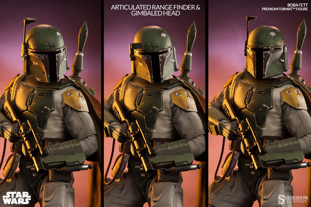 Sideshow unveils their latest Star Wars Premium Format Figure, the notorious bounty hunter BOBA FETT. Based on his appearance in Star Wars Episode V: The Empire Strikes Back, Boba Fett features his iconic Mandalorian armor and jetpack, as well as a poseable cape, helmet and rangefinder that allow collectors to create the perfect dynamic display, down to the last detail.