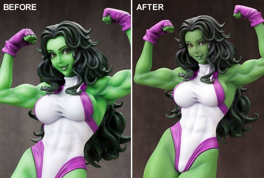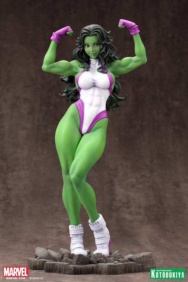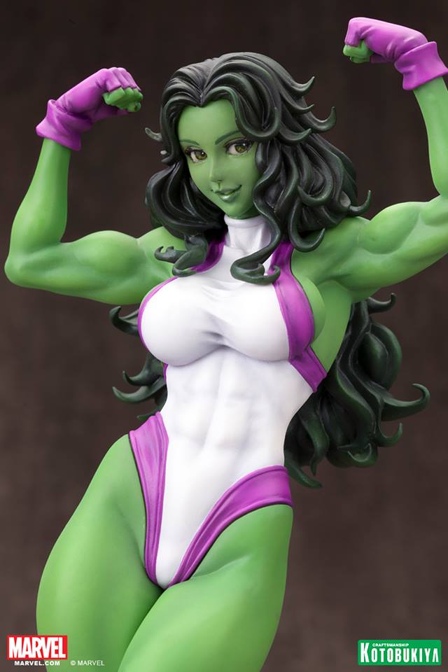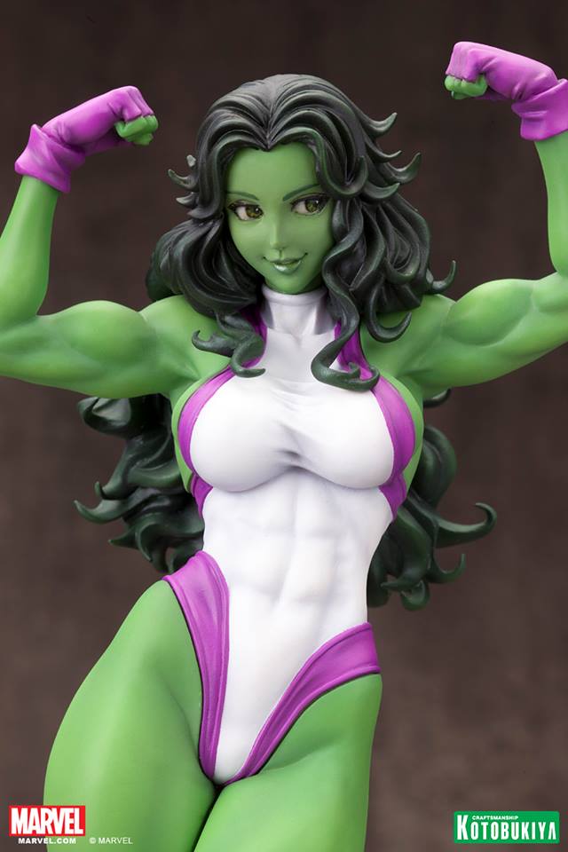 Kotobukiya, in their continuing effort to innovate and improve the products they offer, has reworked the paint application on She-Hulk’s portrait. More updated photos can be found in our gallery below.