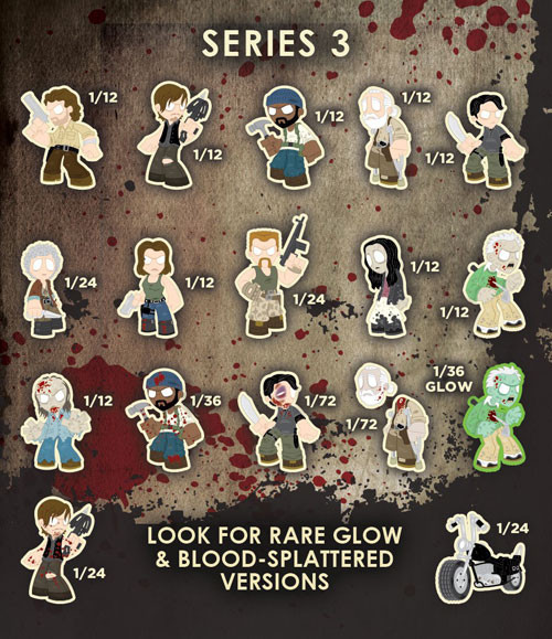 One of Funko's most popular Mystery Minis lines is returning for a third assortment: The Walking Dead. Arriving in February 2015, this wave features seventeen brand new character variations available in adorable blind box form. Check out the rarity chart below.