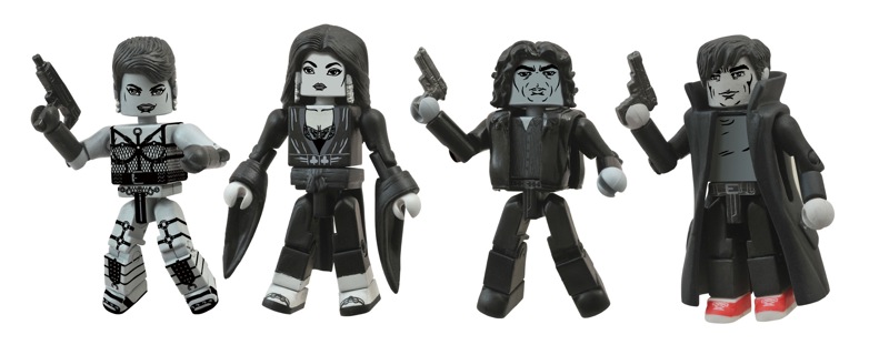 Sometimes, sticking up for your friends means having to kill a whole lotta people. At least, in Sin City it does! The third storyline from the groundbreaking 2005 movie is now a four-pack of Minimates mini-figures, including Dwight, Gail, Miho and Jackie-Boy! Each 2-inch Minimates mini-figure features 14 points of articulation and interchangeable parts and accessories. Comes packaged on a full-color blister card. Designed by Art Asylum! (Item #JAN152170, SRP: $19.99)