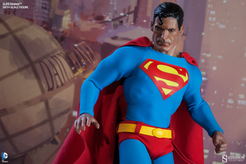 Sideshow has released new photography of their Superman Sixth Scale Figure. The new photos show off the final production piece and accessories.