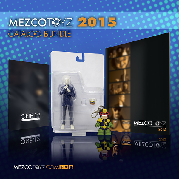 Along with the figure, Mezco is also making a limited number of Toy Fair catalogs available to the general public. The 8.5x11 inch softcover contains 28 full color pages of Mezco product including: Mortal Kombat X, Sons Of Anarchy, Living Dead Dolls, Breaking Bad, Child's Play, and more. Additionally, a special 8.5 x 5.5 catalog dedicated to the One:12 Collective will also be included. This catalog features amazing action shots of upcoming One:12 Collective figures. Both catalogs are printed on glossy #100 paper with a luxurious aqueous coating and a heavyweight #110 matte cover with spot gloss highlights.