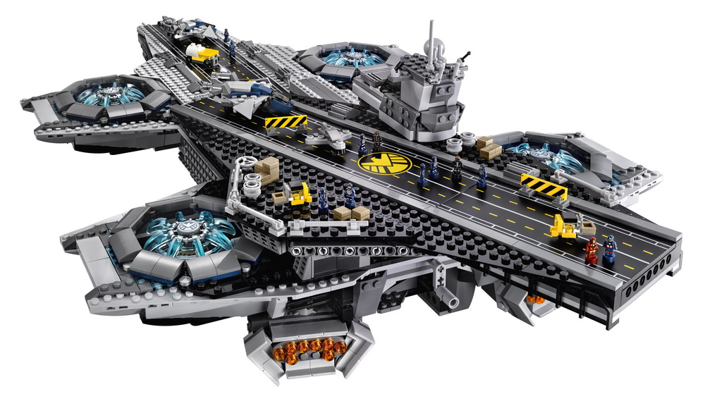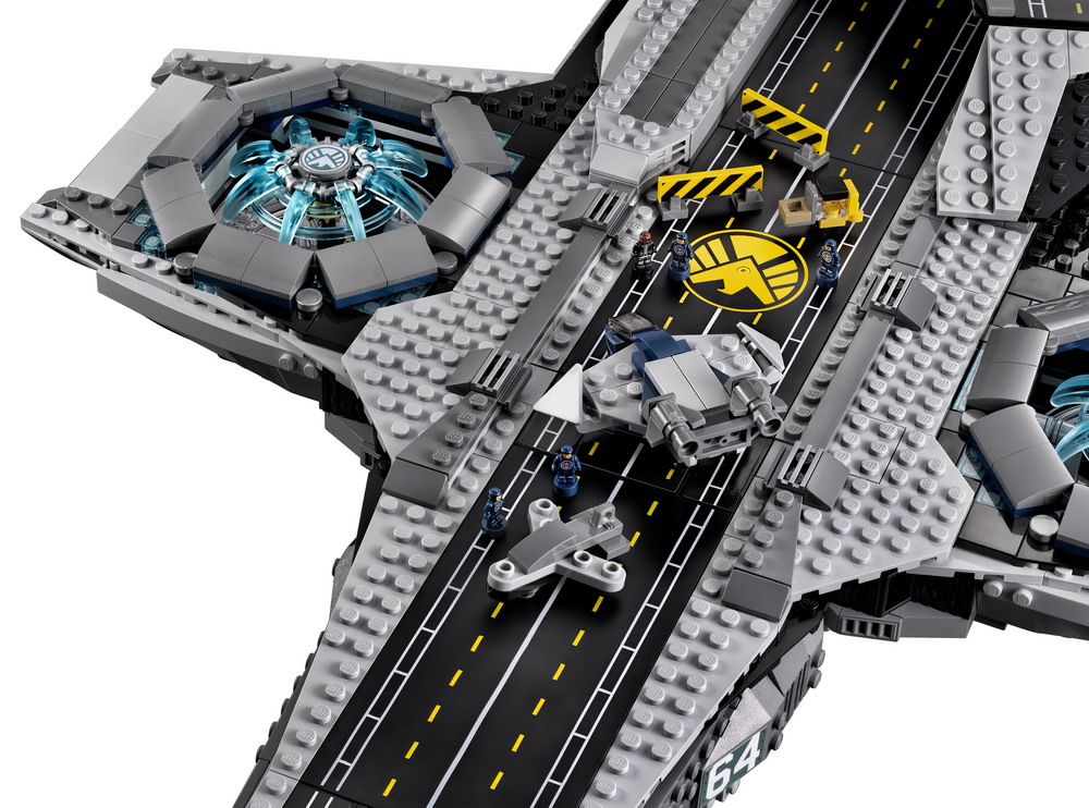 LEGO presents their newest Marvel Super Heroes cunstruction set, the massive 2,996 piece model of The SHIELD Helicarrier (#76042). Construct the flying aircraft carrier with 2 runways, microscale Quinjets, fighter jets and ground support vehicles. The set also comes with many of your favorite LEGO Marvel Super Heroes minifigures, plus 12 microfigures to display on deck and within the highly detailed interior. Includes 5 minifigures: Nick Fury, Black Widow, Captain America, Hawkeye and Maria Hill!