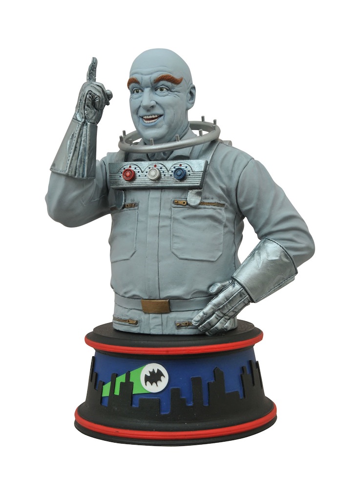 Everybody freeze! The most cold-hearted of Batman's foes from the Batman Classic TV Series joins DST's line of resin busts! Measuring approximately 6 inches tall, this detailed rendering of famous director Otto Preminger in his turn as the villainous Mr. Freeze sits atop a pedestal base inspired by the show's animated opening sequence. Sculpted by Jean St. Jean, he is in scale to DST’s busts of Batman, Robin, The Joker, The Riddler, The Penguin and most comic-book characters! Comes packaged in a full color box with a certificate of authenticity. Limited to 3000 pieces! (Item #FEB152152, SRP: $59.99)