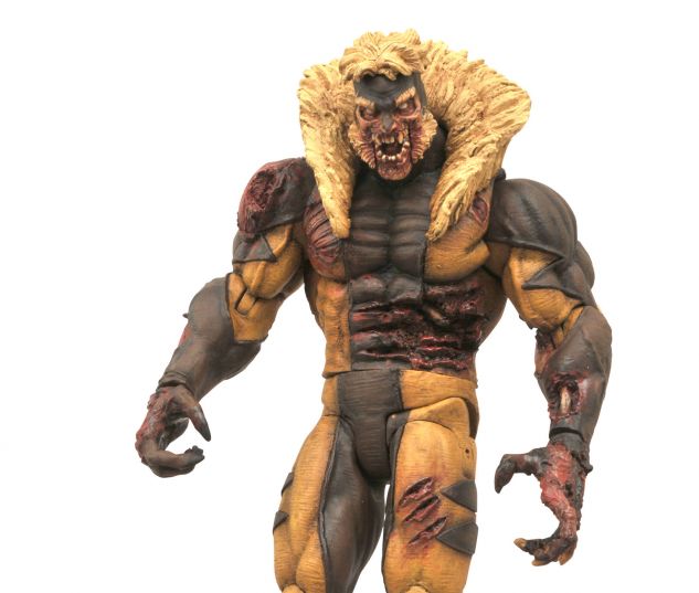 Diamond Select Toys, via Marvel.com, teases their next Marvel Select action figure: Zombie Sabretooth. Standing nearly eight inches tall, the figure will come with a diorama base featuring a damaged chunk of Green Goblin’s Goblin Glider. Look for him this summer priced at a SRP of $24.99.