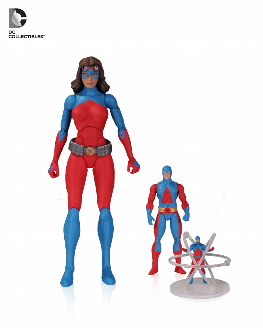 The Atom set, featuring female version Atomica from the Crime Syndicate of America, midsize figure Ryan Choy and small figure Ray Palmer