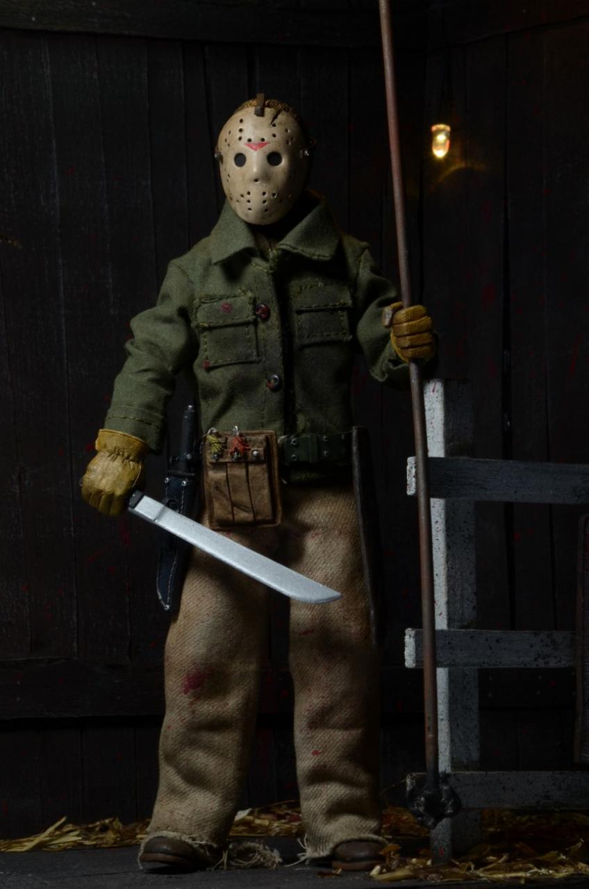 NECA presents their latest 8" Friday the 13th clothed figure. This time it's Jason Voorhees back from the dead as seen in Jason Lives. The unstoppable Camp Crystal Lake killer comes loaded with accessories: removable mask, a machete and a knife that both fit into sheaths on his belt, and the metal fence post that reanimated him. Like all NECA 8" clother figures, Jason comes packaged on a resealable protective clamshell with custom artwork unique to the figure.
