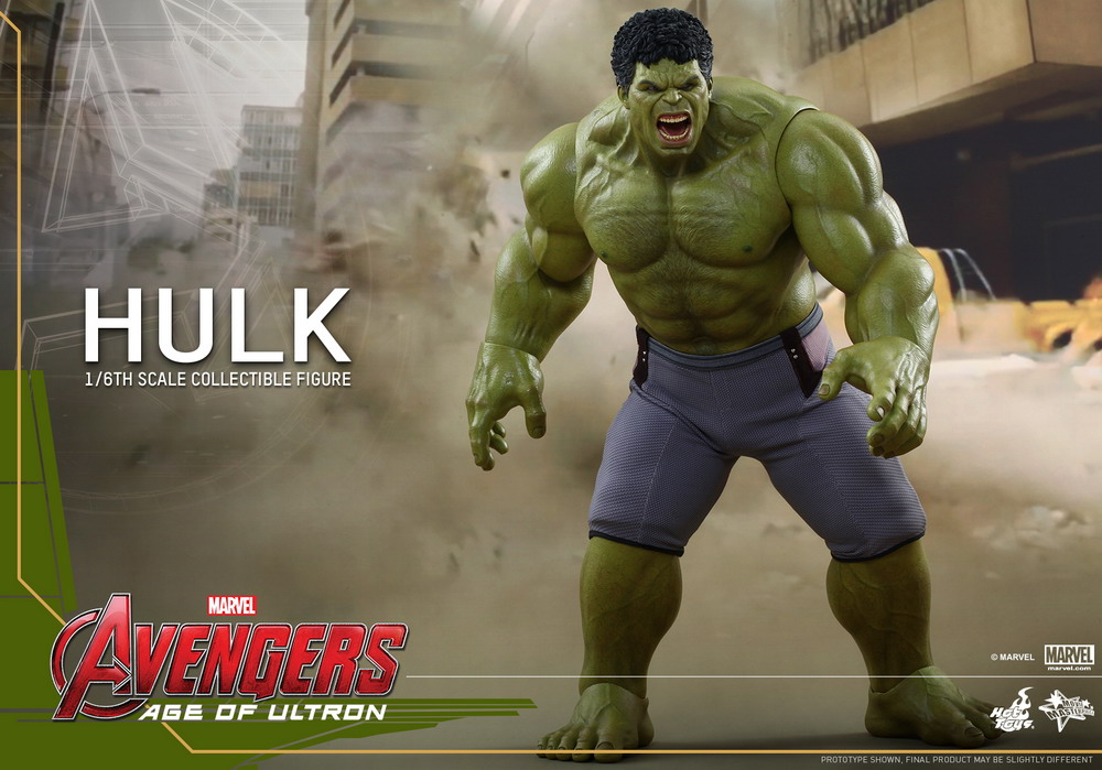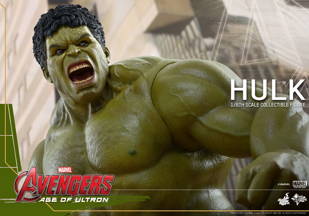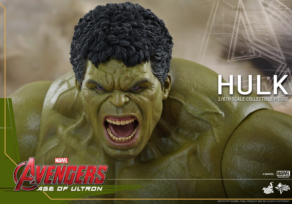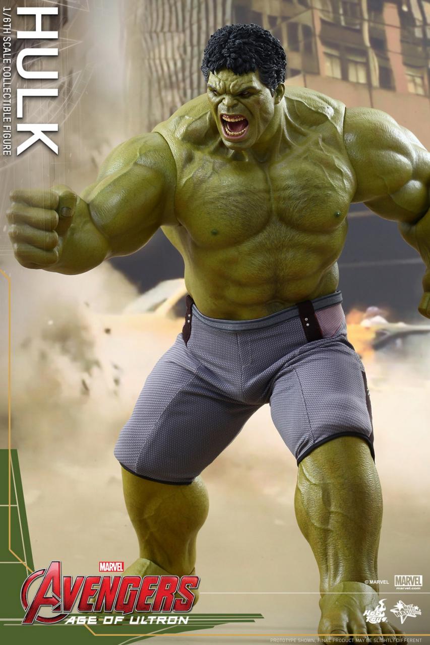 Hulk! The movie-accurate collectible figure is specially crafted based on the image of Hulk in Avengers: Age of Ultron featuring a newly developed screaming head sculpt with rolling eyeballs, and a specially painted muscular body.
