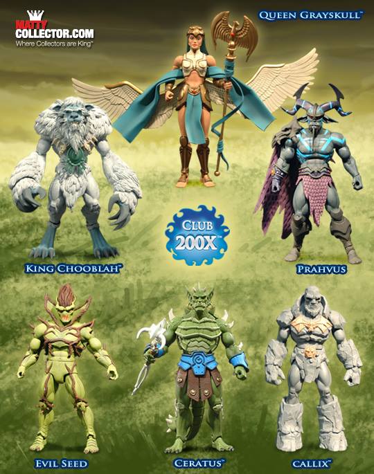 - Club-Exclusive: Heads of Eternia Accessory Pack - includes alternate heads for Grizzlor, Buzz-Off, Sy-Klone, Roboto, Snout Spout, and Clawful (8/15/15)