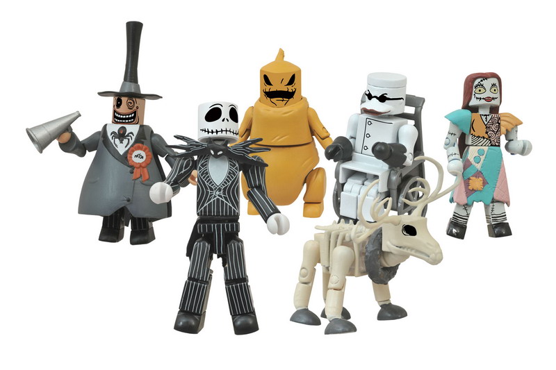 Christmas is coming early this year! Each foil-bagged mini-figure in our display of Nightmare Before Christmas Minimates is like a little present to open, and there are eight different figures you can get! The first series includes Jack Skellington, Sally, Oogie Boogie, The Mayor, Dr. Finkelstein, and three exclusive figures – a Skeleton Reindeer, a glow-in-the-dark Jack, and a rare, one-per-case glow-in-the-dark Sally! With 18 packs to a display, there’s a full set in every one! (Item #APR152292, SRP: $5.99/ea.)