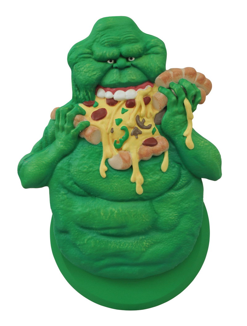 Pizza need cutting? Who you gonna call? How about the Ghostbusters’ resident foodie, Slimer? As a focused, non-terminal repeating phantasm, Slimer tends to eat his food by the handful, with no cutting required, but the overall shape of this Class 5 full roaming vapor is perfect for housing a pizza wheel! A three-dimensional sculpt of Slimer stuffing his face with a whole pizza acts as the handle for a palm-sized blade, perfect for carving out a New York slice. Blade is easily removable for cleaning. Packaged in a full-color window box. (Item #APR152304, SRP: $14.99)