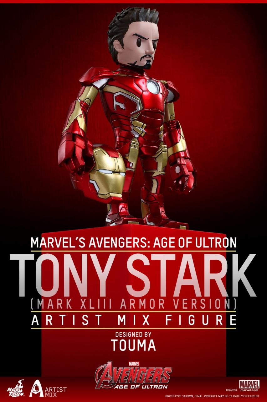 - Japanese toy designer TOUMA’s distinctive art style mixes with the design of Tony Stark in Mark XLIII armor in Avengers: Age of Ultron