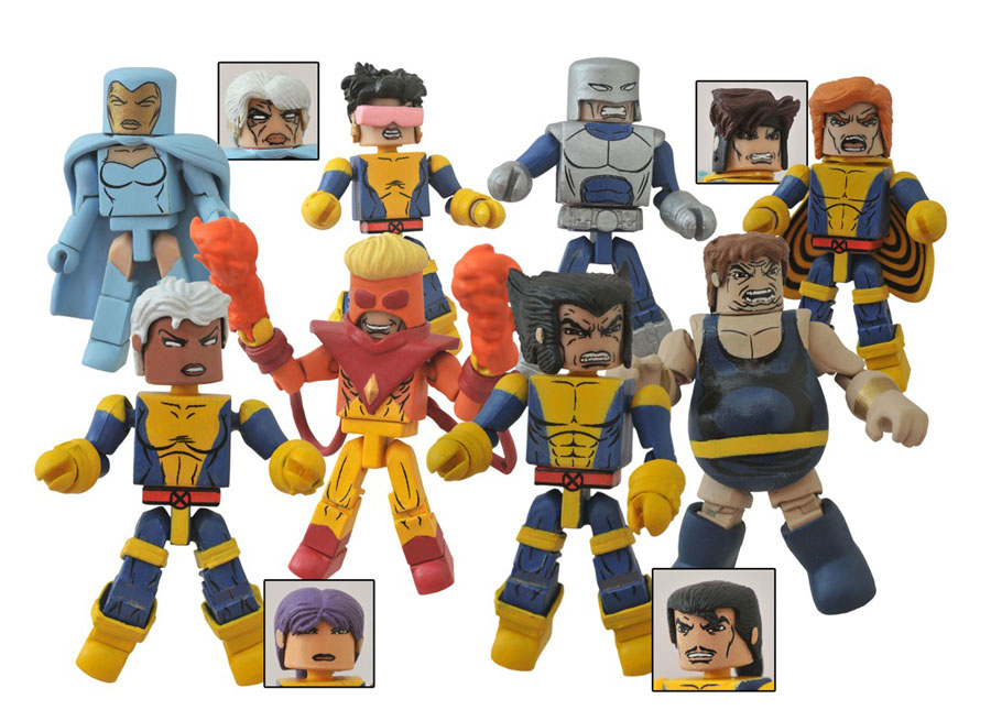 Some of the X-Men’s most memorable costumes and memorable foes return in this all-new assortment of Marvel Minimates! Exclusively available through Previews, this assortment has the X-Men’s Strike Force team (as seen in Uncanny X-Men #275) take on that era’s Brotherhood of Mutants, a.k.a. Freedom Force! Plus each two pack of 2-inch Minimates includes bonus parts to create an alternate X-Men character! The two-packs include Wolverine (with Forge parts) vs. Blob, Banshee (with Gambit parts) vs. Pyro, Storm (with Psylocke parts) vs. Avalanche, and a short-packed, one-per-case two-pack of Jubilee vs. Destiny! Each two-pack is packaged in a full-color window box. Designed by Art Asylum! (Item #NOV142181, SRP: $9.99/two-pack)