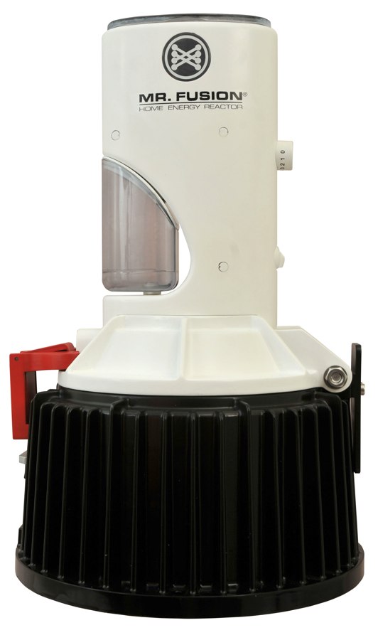 It’s almost 2015, which means we’re only months away from inventing Mr. Fusion, the device that turns garbage into energy! Arguably the biggest technological leap between the 1985 we saw in Back to the Future and the 2015 we saw in Back to the Future II, the Mr. Fusion Home Energy Reactor is now a realistically scaled 18″ electronic replica from Diamond Select Toys, complete with a sound effect to let you know that the sealed processing unit has been opened and is ready to process household waste into 1.21 gigawatts of energy! Runs on included batteries. (Item #OCT142188, SRP: $399.99)