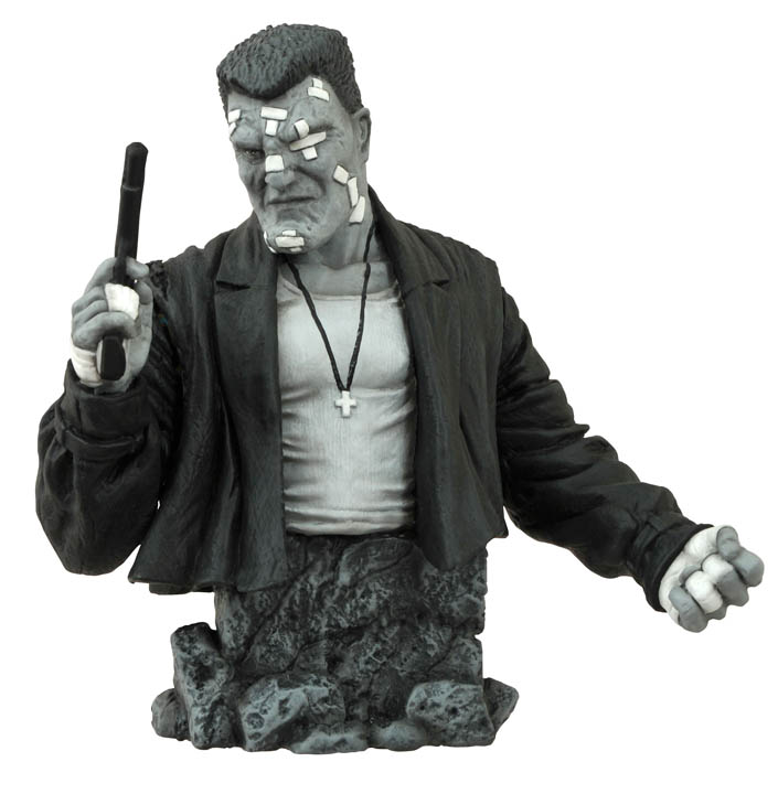 Sin City is no place for the soft or weak. Luckily, Marv is as hard as they come! We made this collectible 6″ bust of Marv out of high-quality resin, so he and his gun Gladys will blend into your bust collection, no matter how tough a crowd it is. Set into a rocky base, he’ll stand guard on your shelf. your desk or even the bar at Kadie’s Club Pecos! Sculpted by Jean St. Jean. Limited to 1,000 pieces. Comes packaged in a full-color box. (Item #NOV142178, SRP: $59.99)