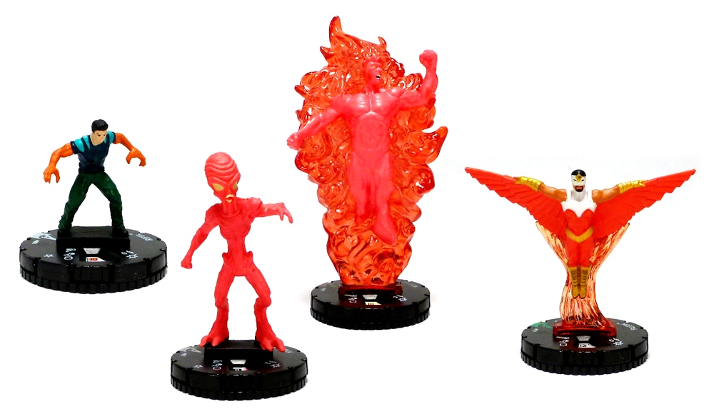 As always WizKids strives to elevate the quality of their figures with each HeroClix expansion, and Avengers Assemble has a fantastic range of figures with unique looks and dynamic sculpts. There are lots of fighting and lunging superheroes but also a fair share of blustering bullies and even a butler sweeping up after his charges. Black Widow aims her Widow’s Bite with her pistol at the ready, Justice stands tough as a veteran in the Initiative, Rage, Cammi, and Loki lunge forward with fist, gun, and sword, Master Pandemonium looks snarky twirling his cape, Cap catches his blazing shield, and Ms. Marvel takes off with an embiggened fist, just to name a few. There are tons of great sculpts in this set, and among the best (in my opinion) include the transforming Reptil, Turbo with her high tech armor, winged Falcon, the well-dressed Juston Seyfert with his Sentinel control rig, highly detailed Ultragirl, Silver Claw with her intricate armor, Jarvis, the beautiful Starbrand (and we get two of them!), Iron Man floating in mid-air, and Ronin with a crazy amount of weapons and complex martial arts outfit. I’m a big fan of good texture work, and you can see that reflected on figures like Aleph with the robot’s overlapping armor plates, Firebird’s flame mantle, the dripping Sandman, and the fur of Red Wolf’s mantle and wolf Lobo. As always the chases all have great sculpts worth checking out closely, and I have to mention two of my favorite figures in this set: the creepy alien Hybrid and the towering Korvac with its humanoid shape emerging from a pillar of swirling energy!