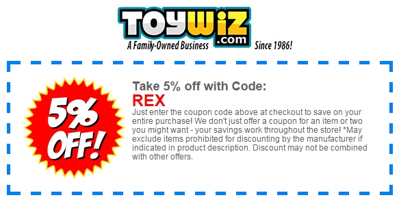 ToyWiz.com has thousands of in-stock items. Use the coupon code REX and receive 5% off your purchase! Shop from an incredible selection of the newest and most popular action figures, toys, and collectibles including: