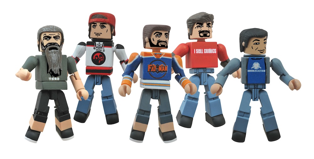 The gang’s all here! The five stars of AMC’s hit reality TV series Comic Book Men combine to form the most powerful Minimates box set in the galaxy! Kevin Smith, Walt Flanagan, Bryan Johnson, Ming Chen and Mike Zapcic each get their own 2-inch Minimates mini-figure in the first five-pack dedicated to the Comic Book Men. Each figure stands 2 inches tall with 14 points of articulation, and features interchangeable parts and accessories. Packaged on a full-color blister card. Designed by Art Asylum! (Item #FEB152151, SRP: $24.99)