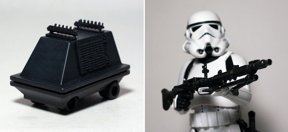 The double pack also comes with one heavy blaster and one mouse droid. If you pick up the Sideshow exclusive, you also get an exclusive Blaster Rack which really isn’t all that necessary, but a nice touch if you get that release. The Mouse Droid can roll around on its plastic wheels so if you’re a sucker for all things droids related, You’ll want to get this set