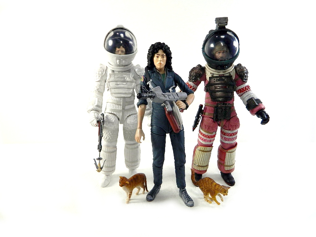 NECA's fourth wave of action figures based on the ALIEN franchise has been released, the series continuing to celebrate the 35th anniversary of the film that started it all: 1979's Alien. Series 4 also marks a milestone for the line (and collectibles in general), introducing to the world the first-ever action figure featuring the officially approved likeness of actress Sigourney Weaver. Yes, figures of the actress have been released, but if you think back you'll quickly realize that those toys never had an accurate portrait. To take full advantage of this exciting occasion, this wave stars not one, but two Ellen Ripley action figures: the brave warrant officer wearing her Nostromo jumpsuit and equipped with a flamethrower, as well as the lone survivor seen at the end of the movie donning an emergency compression suit and armed with a harpoon gun. "Jonesy" the cat also makes his feline debut, a calm version of the tomcat packed with jumpsuit Ripley and an angry sculpt included with compression suit Ripley. For those that can't get enough of the Alien hero, Ripley as seen in 1986's Aliens joins the line in Series 5!