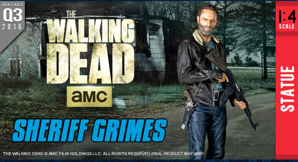 The final addition this week is the sheriff himself, Rick Grimes from TV's the Walking Dead! This epic quarter scale statue (18 inches tall) was digitally sculpted and features the weary leader in his screen accurate outfit and loaded for bear. Also coming Q3 2016, Rick is the priciest of the new products shown this week at $399.