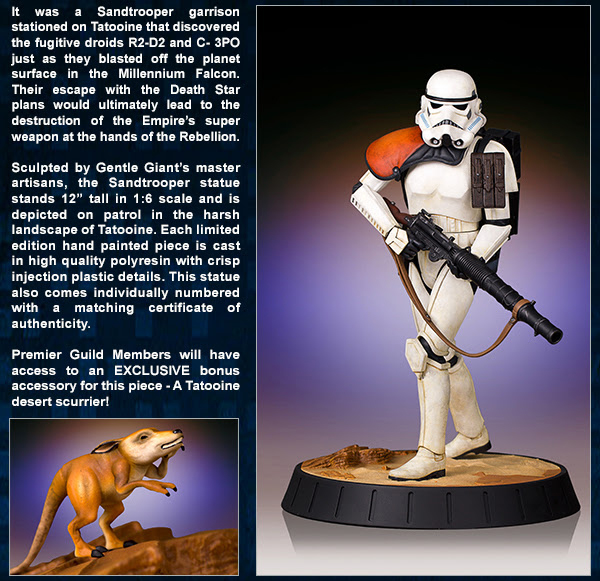 While the Force Awakens is grabbing most of the headlines these days, Gentle Giant is bringing collectors some old school Star Wars goodness with the original trilogy Sandtrooper Statue. With all of the details you remember from A New Hope the Sandtrooper stands 12 inches tall and is hand painted. It will arrive Q3 2016 and costs $279.