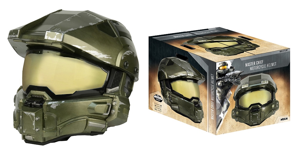 In a first for the company, NECA is nearing completion on their Halo Master Chief Motorcycle Helmet. Not only is it an amazing replica, but the helmet is also a wearable DOT-approved motorcycle helmet! Pictured are new photos, including the packaging design, along with a listing of all the helmet's features. It is expected to ship this December. Pre-orders are currently being accepted at many fine retailers, including BigBadToyStore.com where it is priced at $499.99 in sizes small, medium, large and extra large.