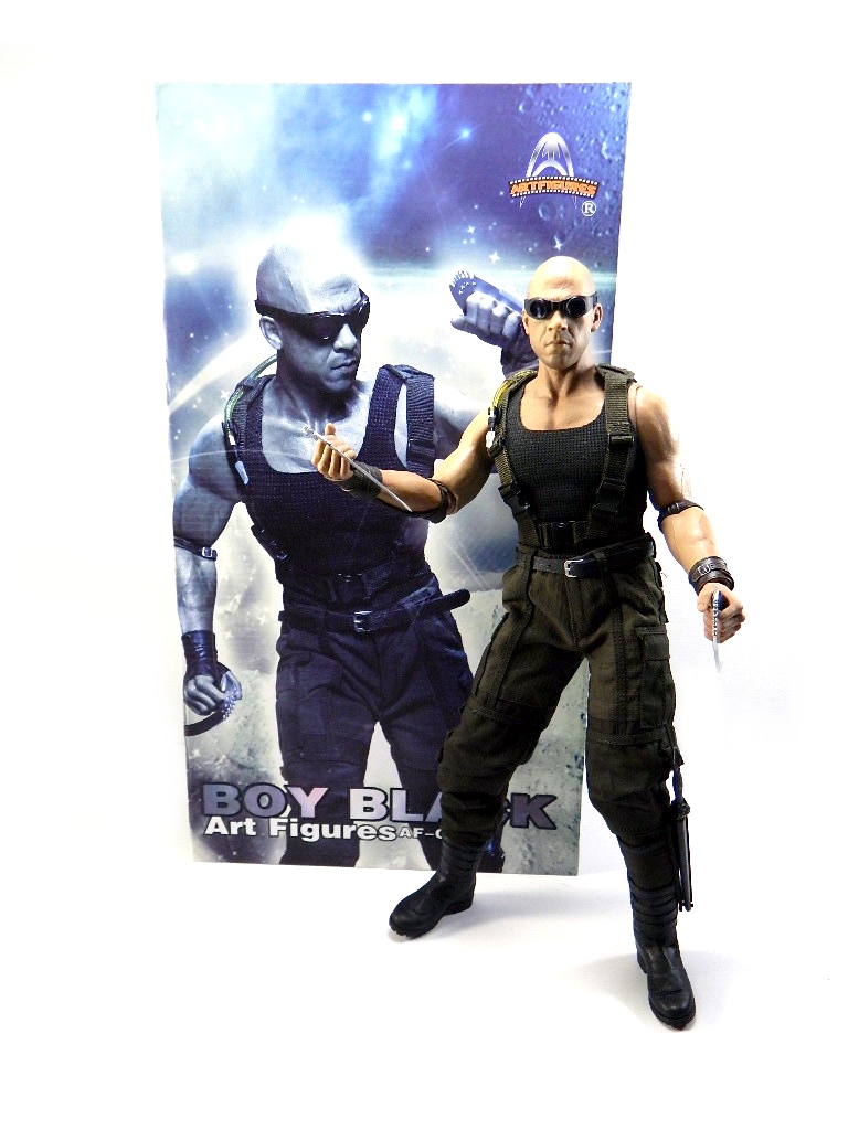 Art Figures follows up last year's phenomenal Heavy Armoured Special Cop, aka: Dredd (read my review HERE) with another oddly named, but very recognizable sci-fi movie hero: Boy Black, aka: Riddick. Like Dredd, there is obviously some skirting the corners with licensing with this figure, but don't let the generic name fool you. This figure is 100% Vin Diesel as the star of Pitch Black (thus the Boy Black name), highly underrated Chronicles of Riddick, and 2013's awesome adventure, Riddick. Vin recently announced over the weekend that plans are in place for a fourth film titled Furia. Sounds like Riddick will finally be heading home.