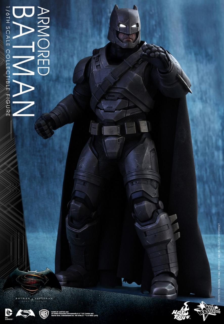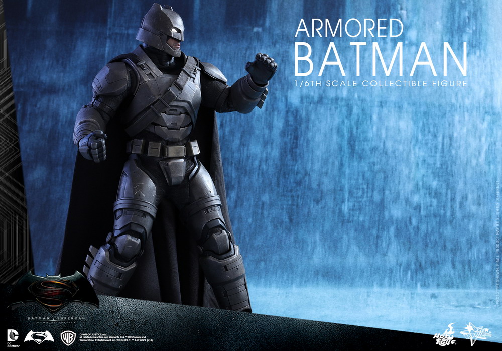 The movie-accurate collectible figure is specially crafted based on the image of Ben Affleck as Armored Batman from the film. It features a newly developed armored head with LED light-up eyes and two interchangeable lower faces capturing Ben Affleck’s facial expressions, meticulously crafted armor with weathering effects, detailed Batman weapons, and a specially designed Batman v Superman: Dawn of Justice themed figure stand.